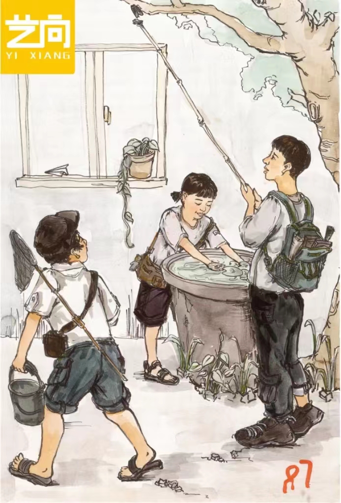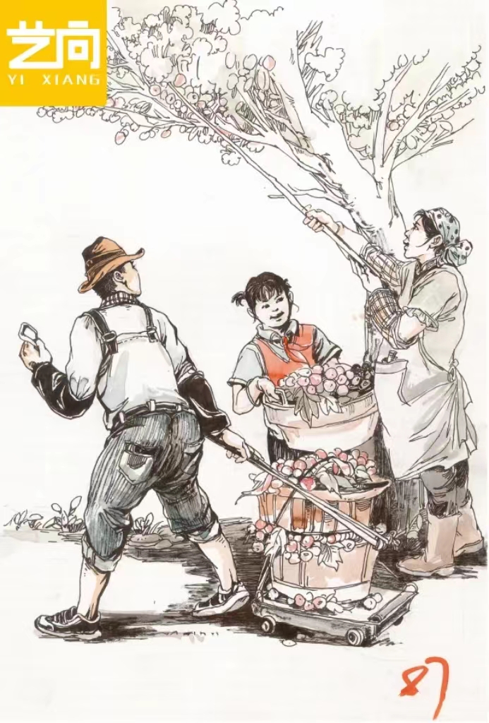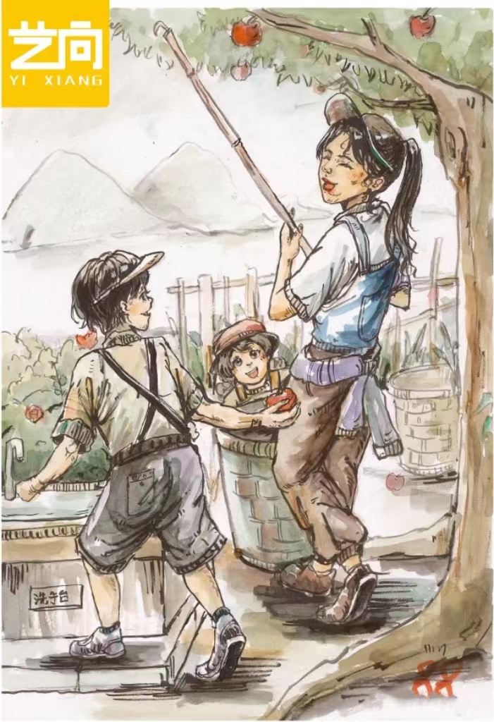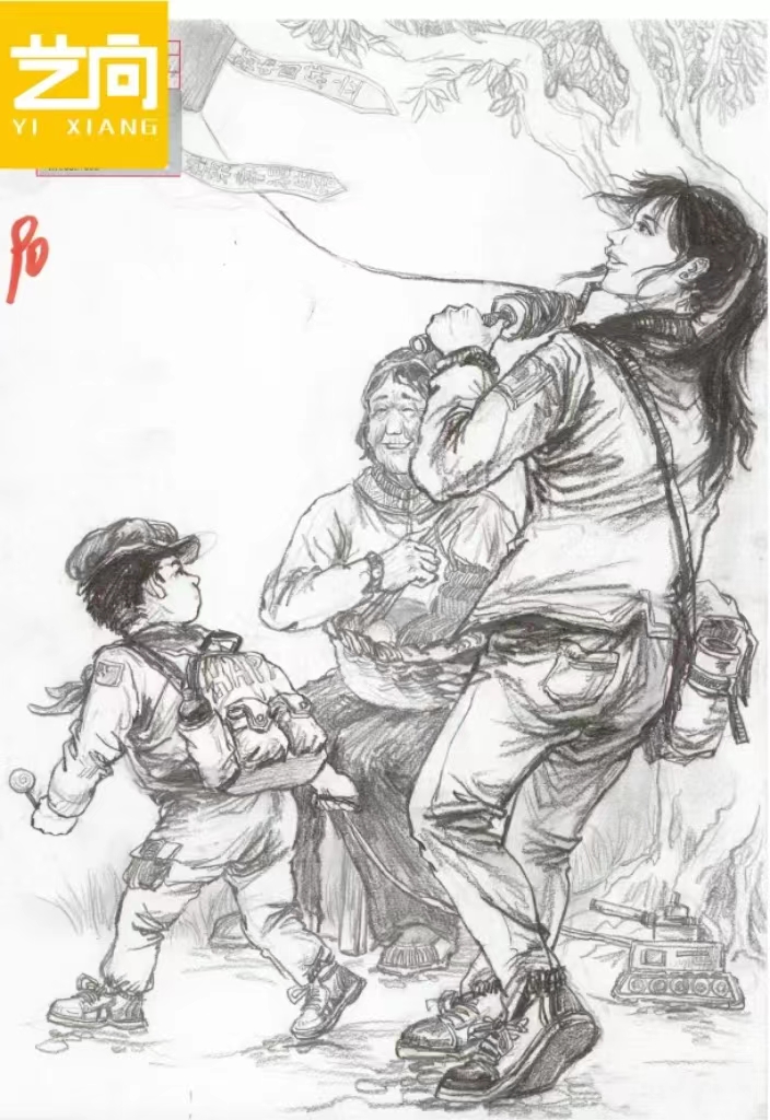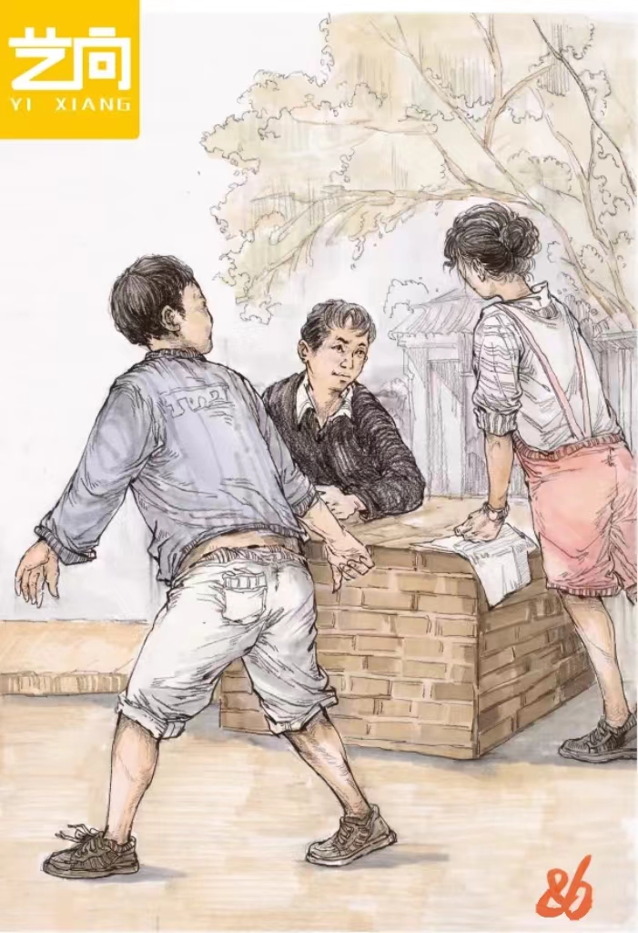 考題解析:改革后的速寫作畫時間2個小時,這讓我們有更充分的時間去考慮畫面構圖、人物造型動態等。這個考題看起來一時間摸不著頭腦,但其實相對比較簡單,根據考題內容的畫面進行構圖,三人的三角形構圖,可以直接照搬畫家豐子愷作品人物的動態,結合我們所學的速寫人物的表現手法進行再創作,難度相對較低。