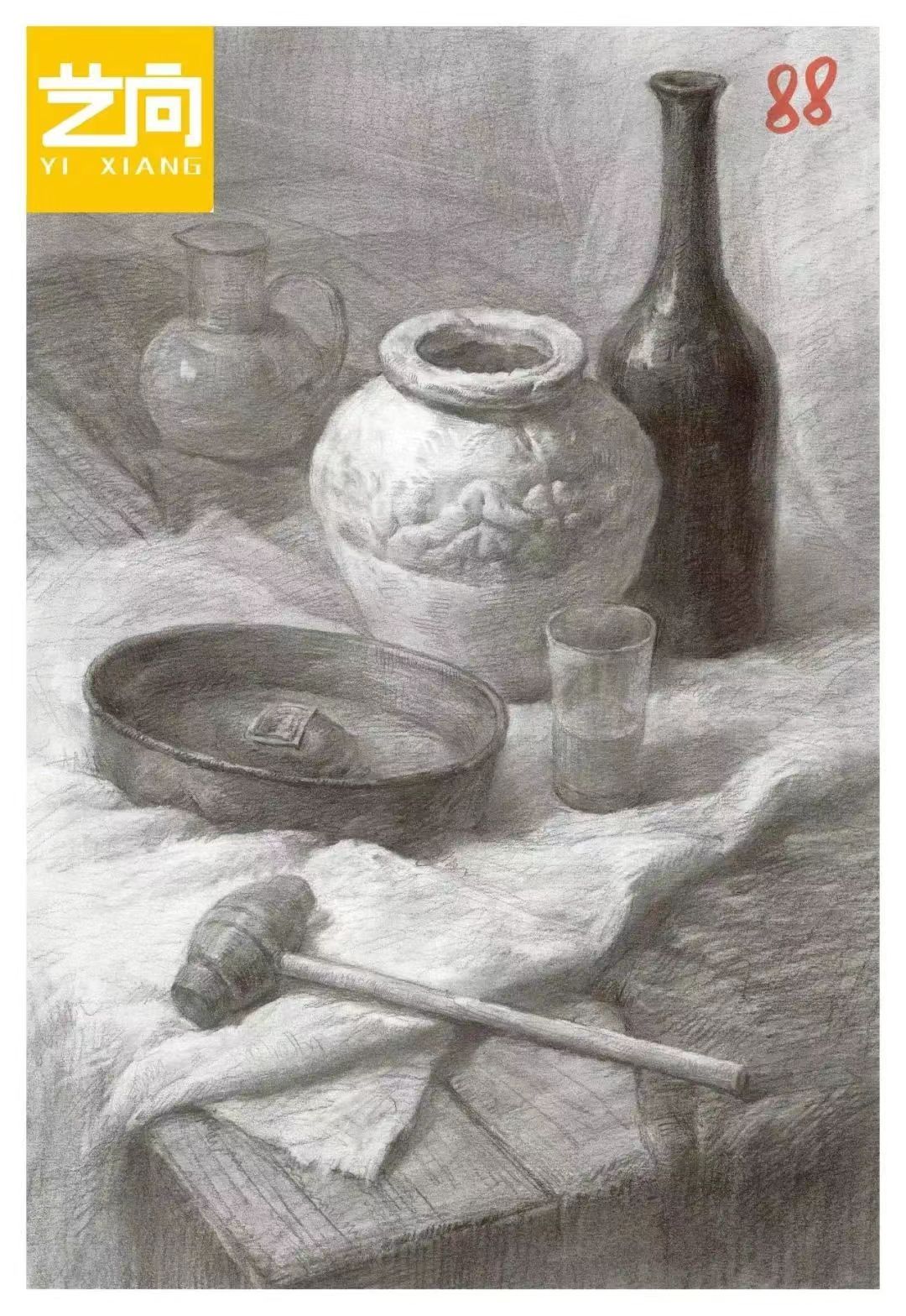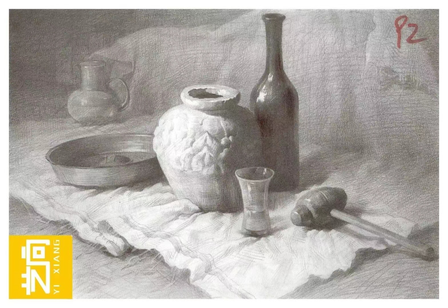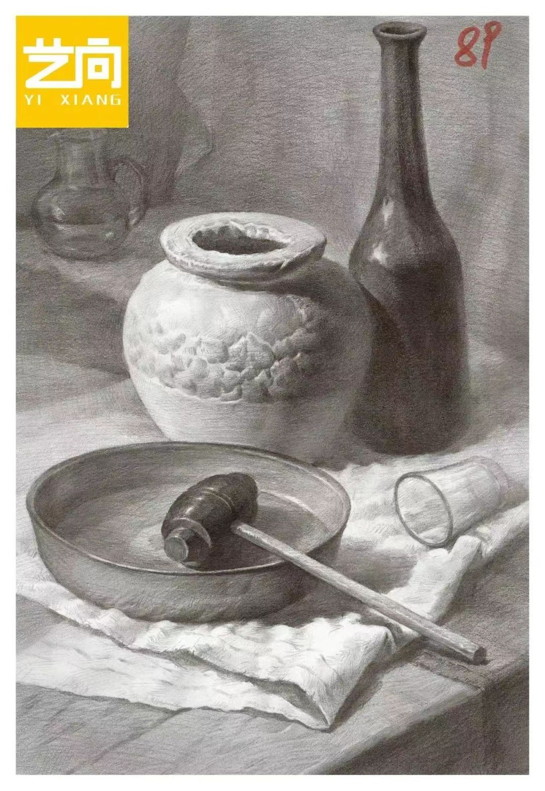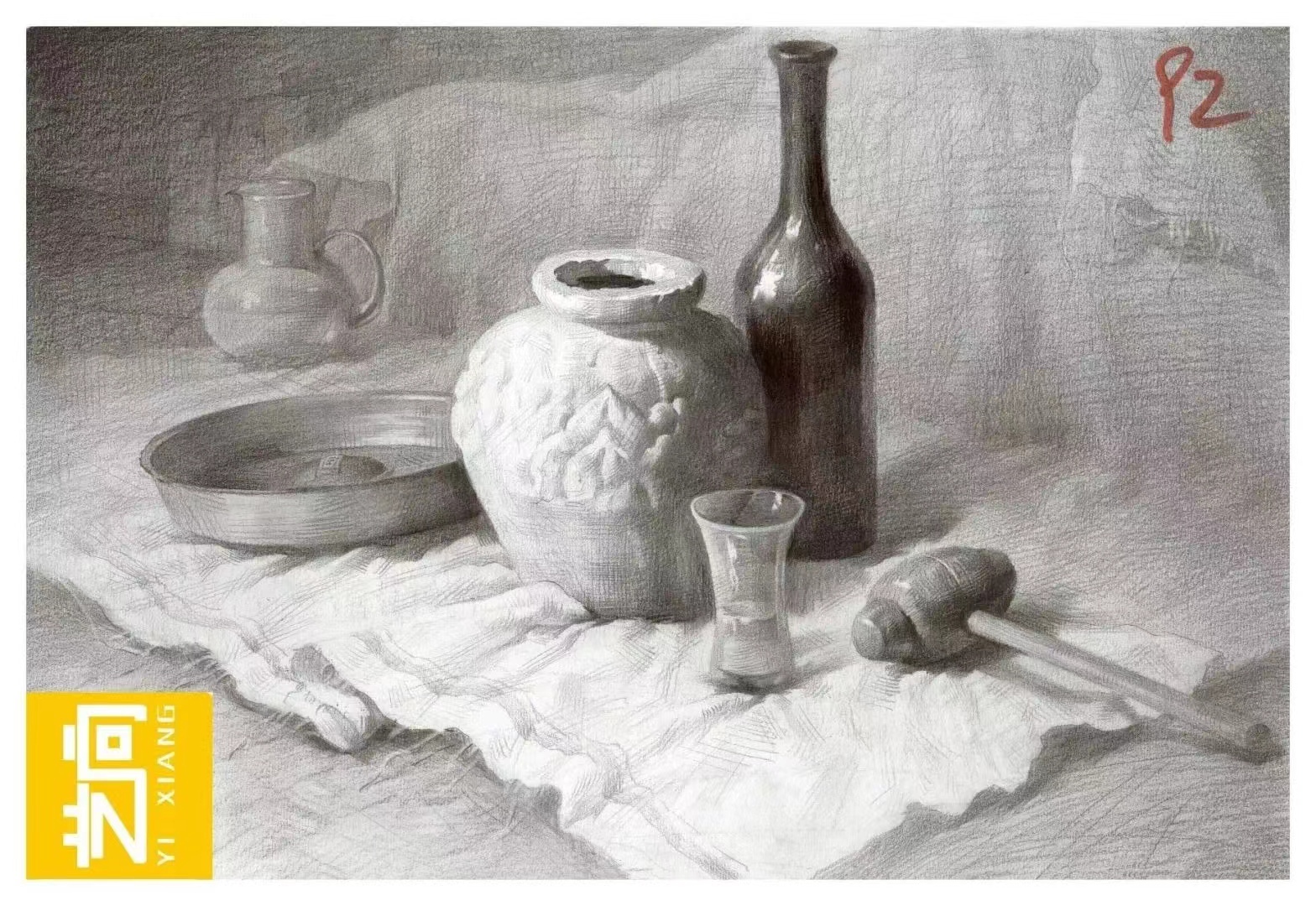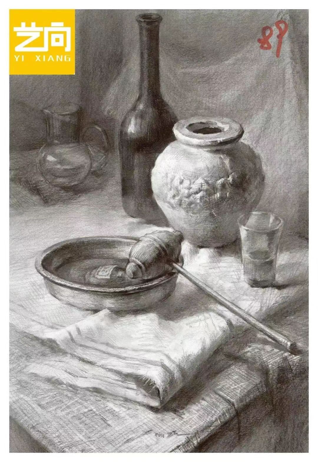 考題解析:物體相對比較“緊”一些,這個時候我們可以把襯布或者背景畫得松動一些,這樣的畫面節奏感層次感就比較豐富,畫面協調耐看。