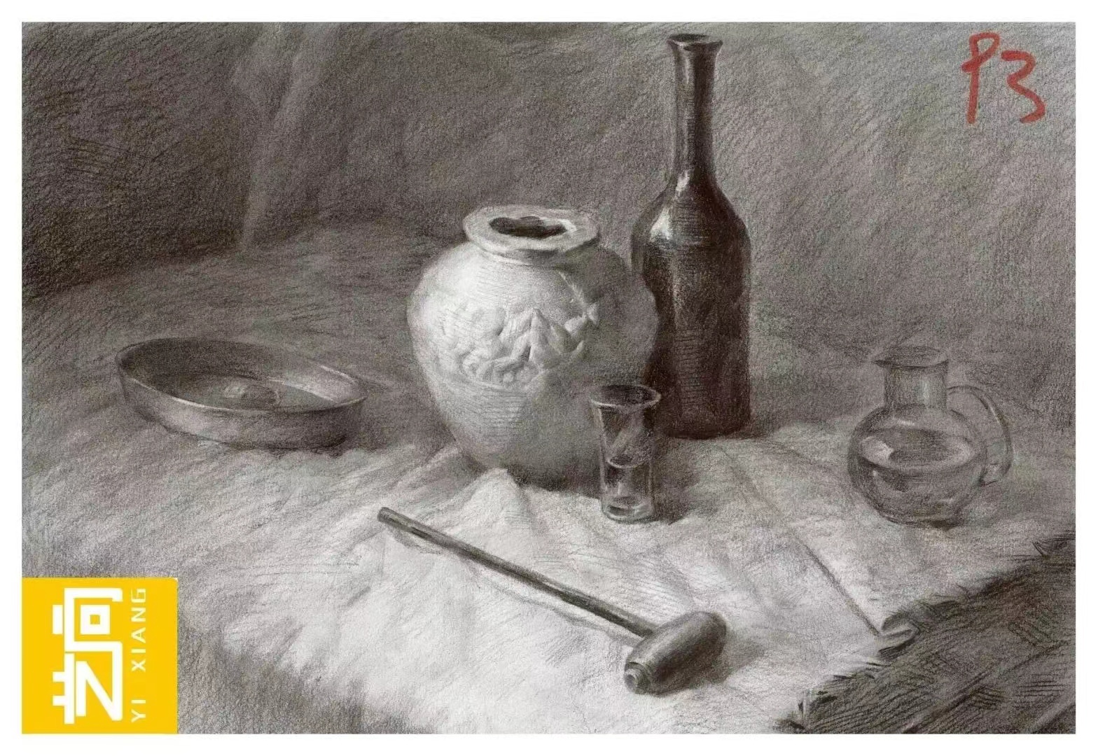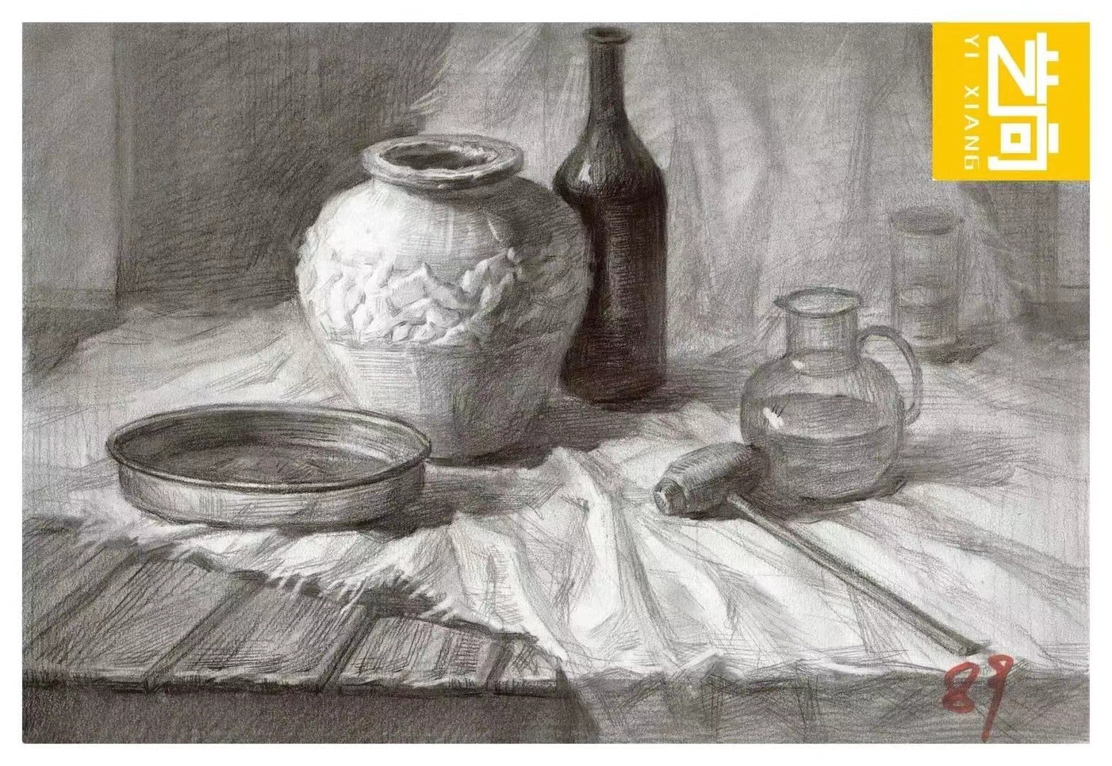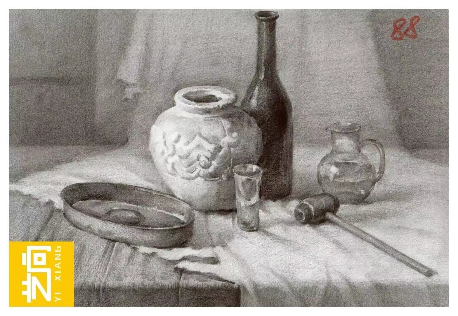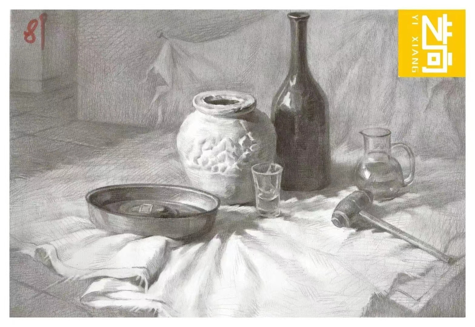 考題解析:物體相對比較“緊”一些,這個時候我們可以把襯布或者背景畫得松動一些,這樣的畫面節奏感層次感就比較豐富,畫面協調耐看。