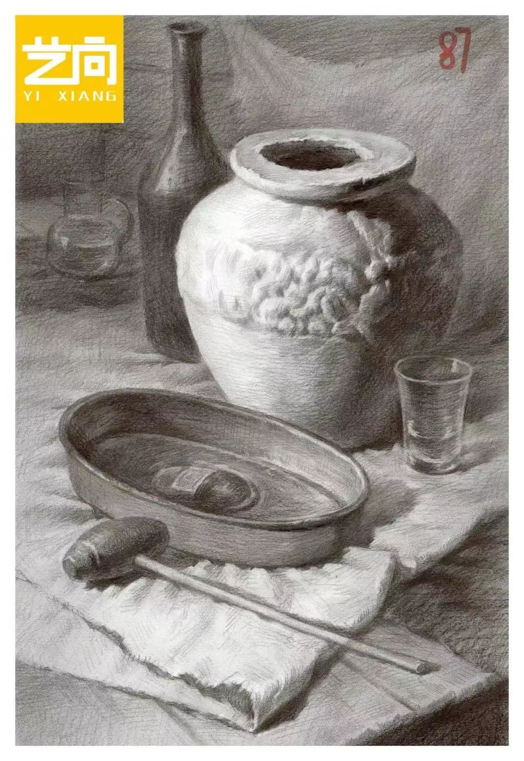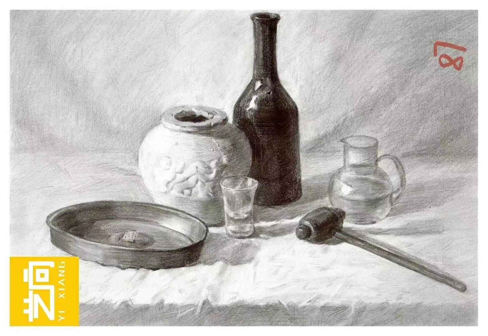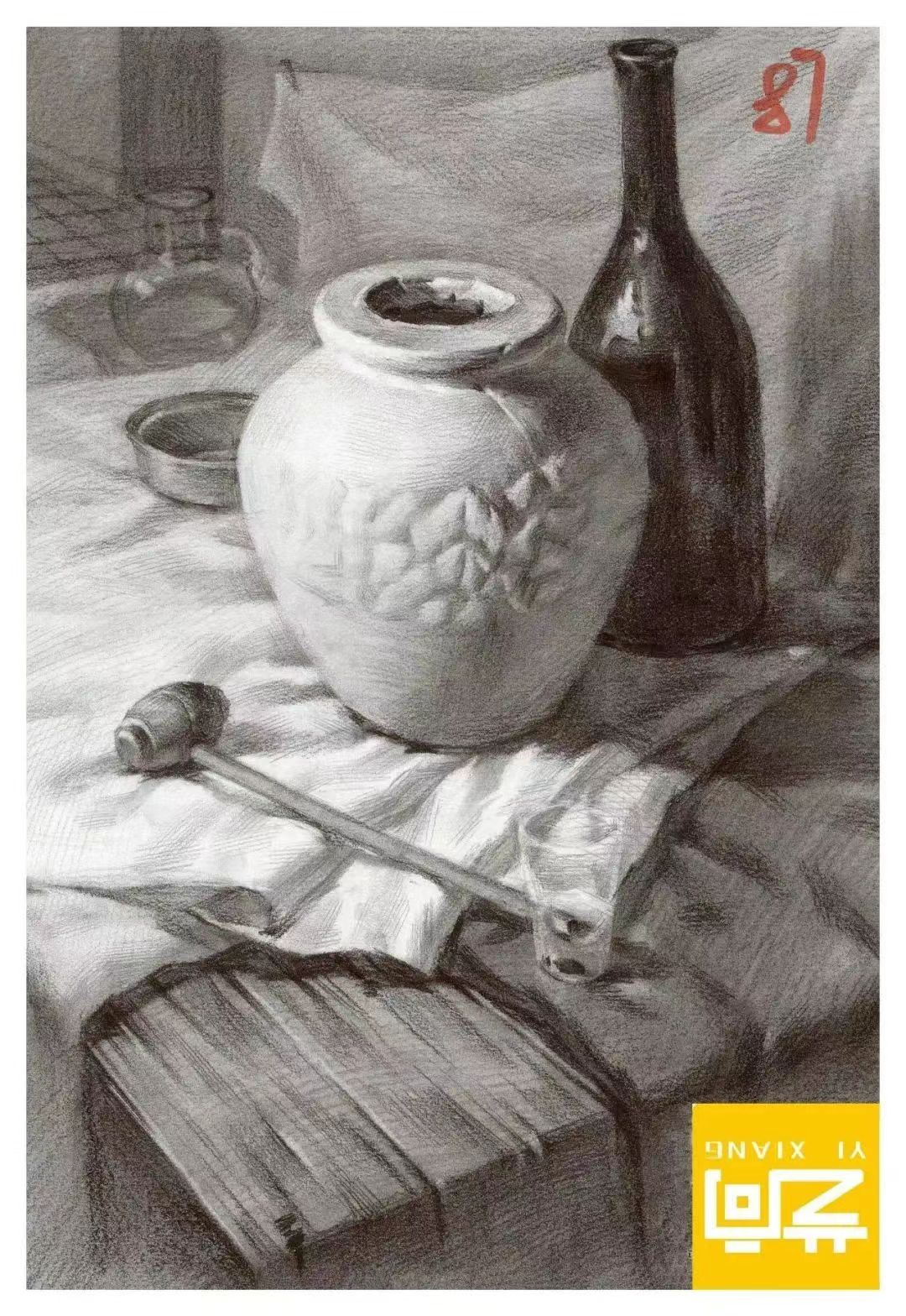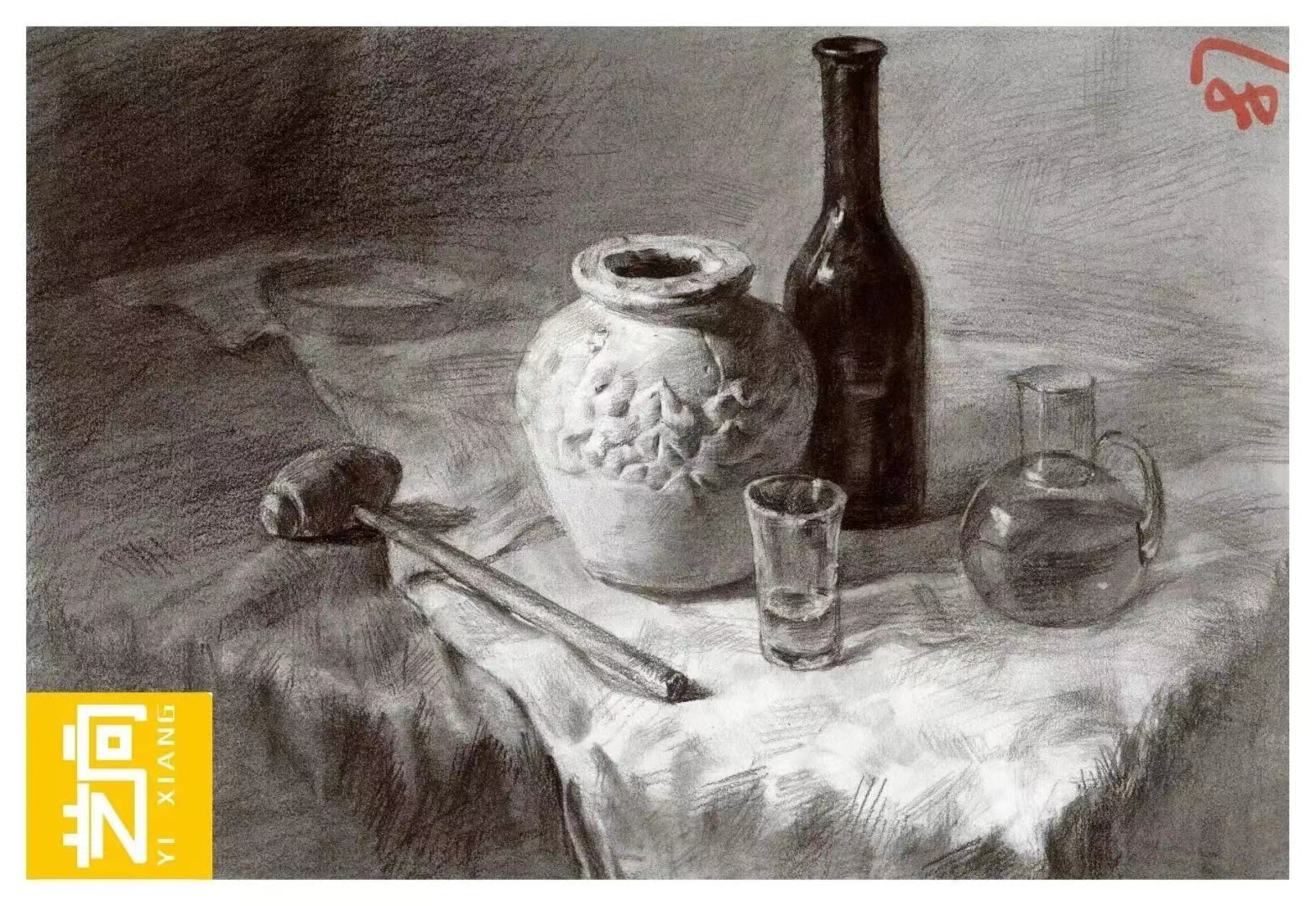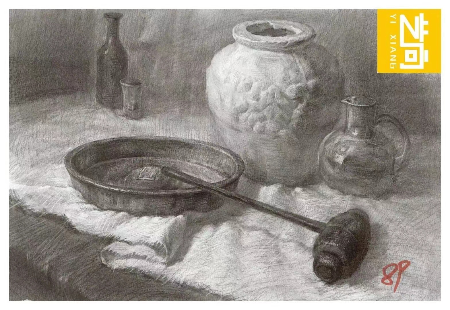 考題解析:物體相對比較“緊”一些,這個時候我們可以把襯布或者背景畫得松動一些,這樣的畫面節奏感層次感就比較豐富,畫面協調耐看。
