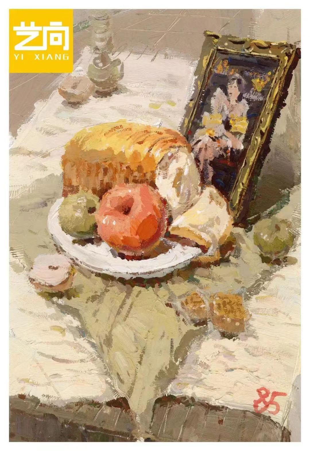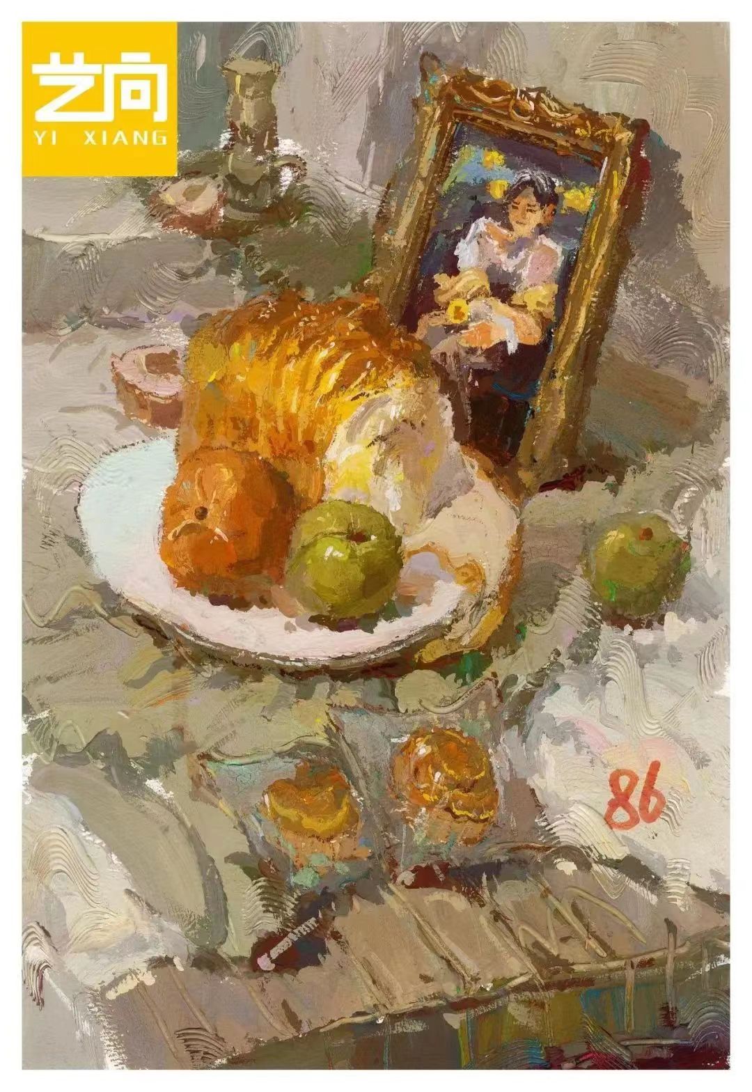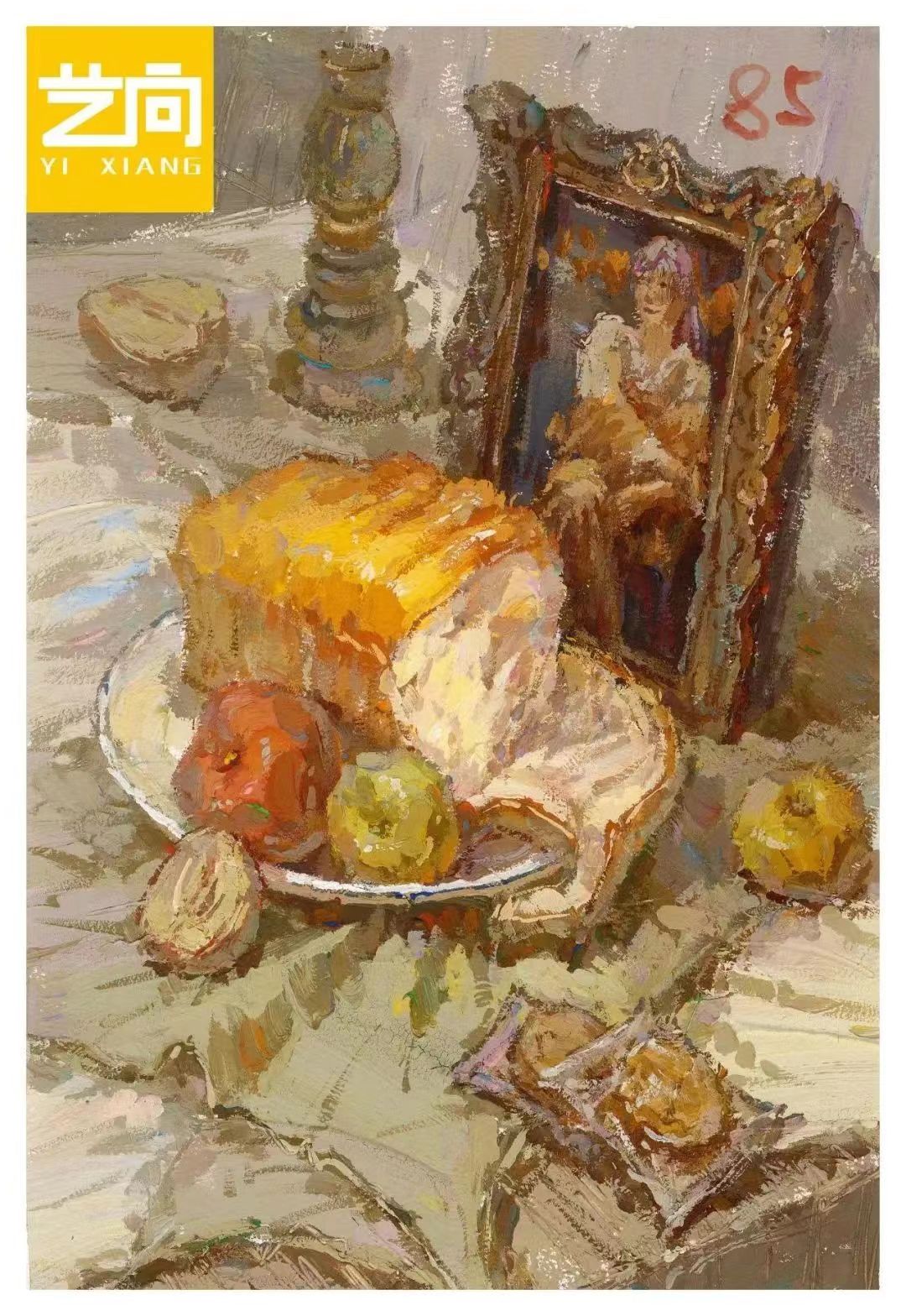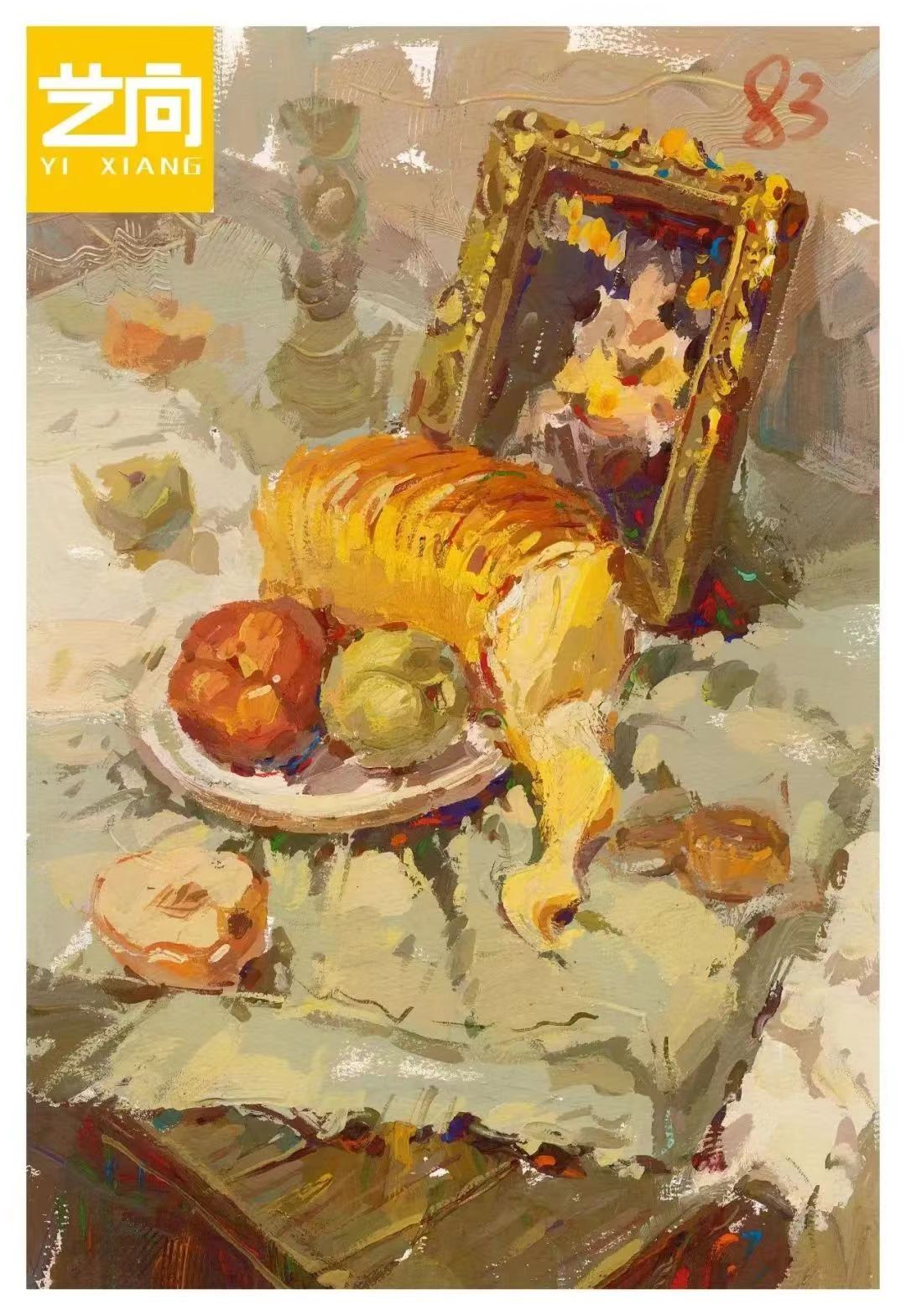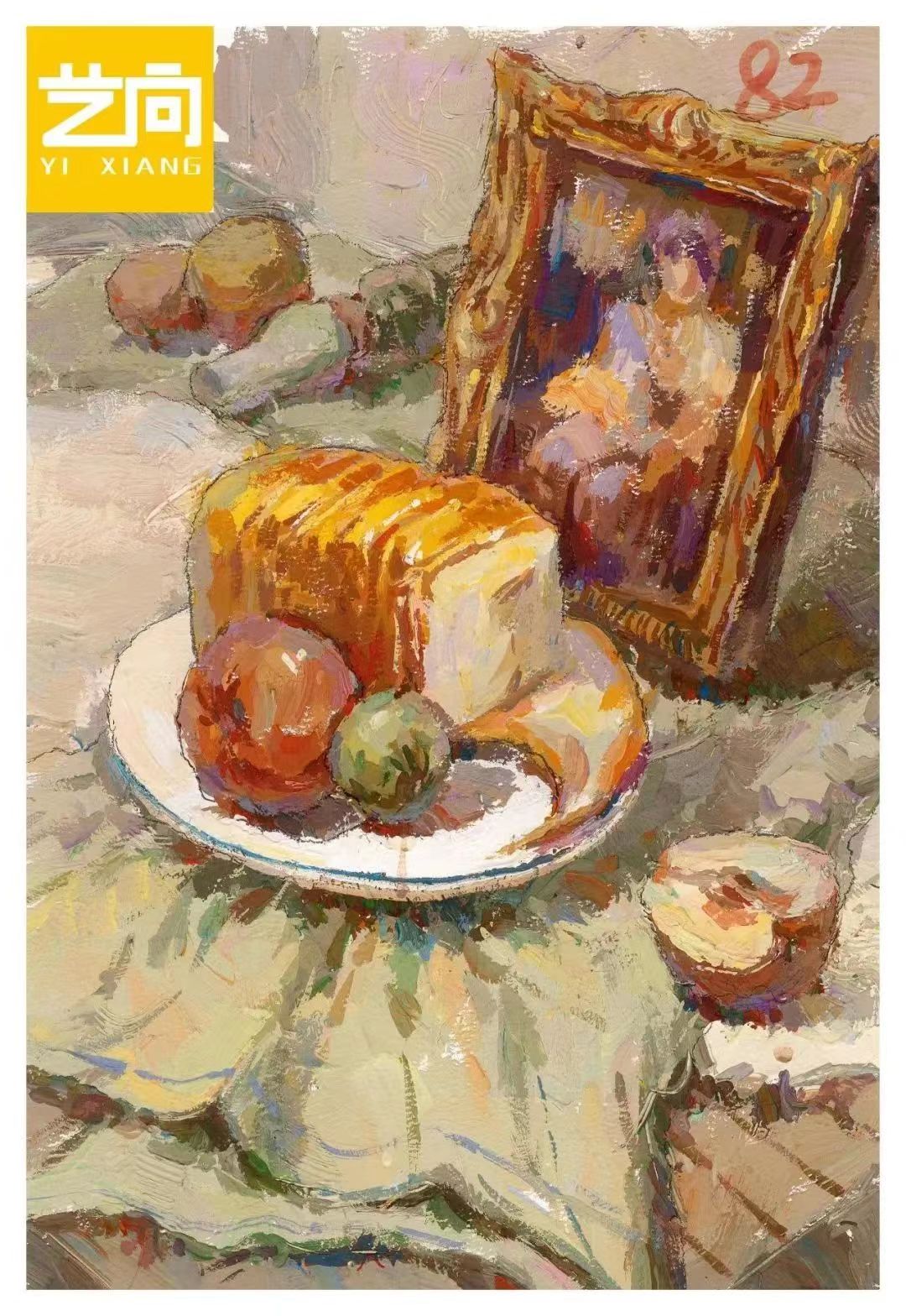 考題解析:物體相對比較“緊”一些,這個時候我們可以把襯布或者背景畫得松動一些,這樣的畫面節奏感層次感就比較豐富,畫面協調耐看。