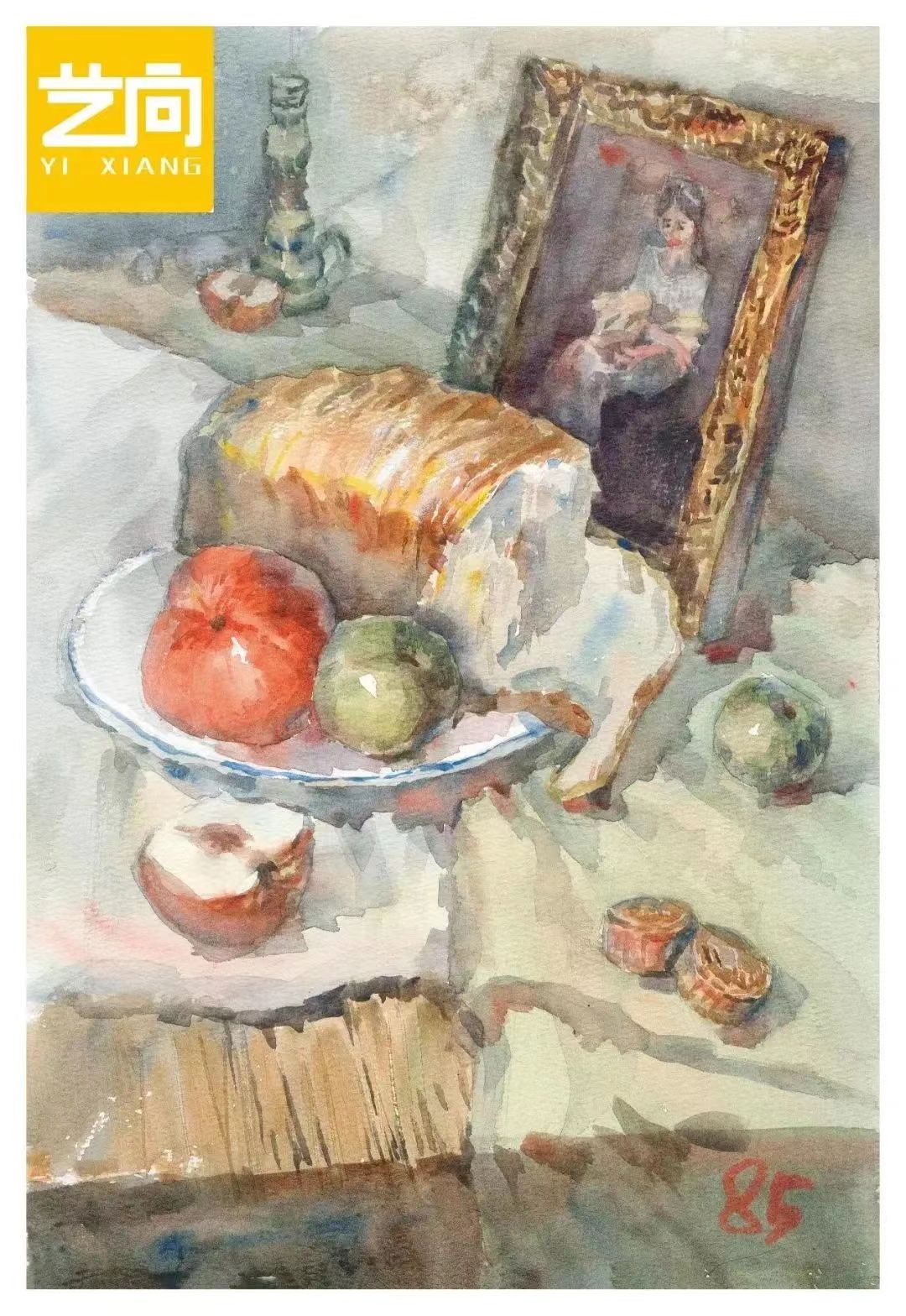 考題解析:色彩考題較為簡單,物體造型比較容易表現,直接照搬照片的構圖即可,或者是重新組合成豎構圖,但是主體物不用動,調整一下零散的物體組織好構圖,物體顏色鮮明,注意好色調的傾向。