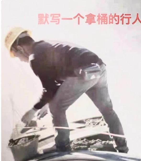 1.考試題目:雙人動態組合,1個彎腰干活的泥水匠(照片) + 1個拿桶的行人(默寫)