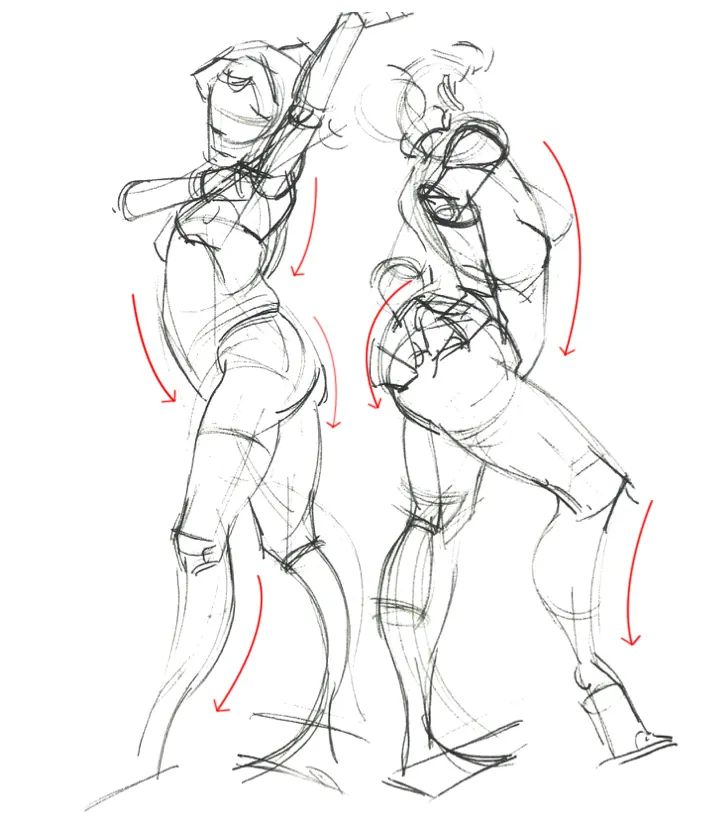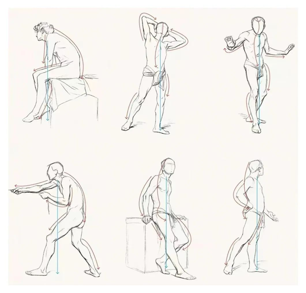 即使在運動角度達到最大時,動態(tài)中也必須有一種穩(wěn)定感,就像鐘擺一樣,人體可以重新回到穩(wěn)定的重心上來。這種平衡感在繪畫中表現(xiàn)出來的是動作的連貫性和韻律感。