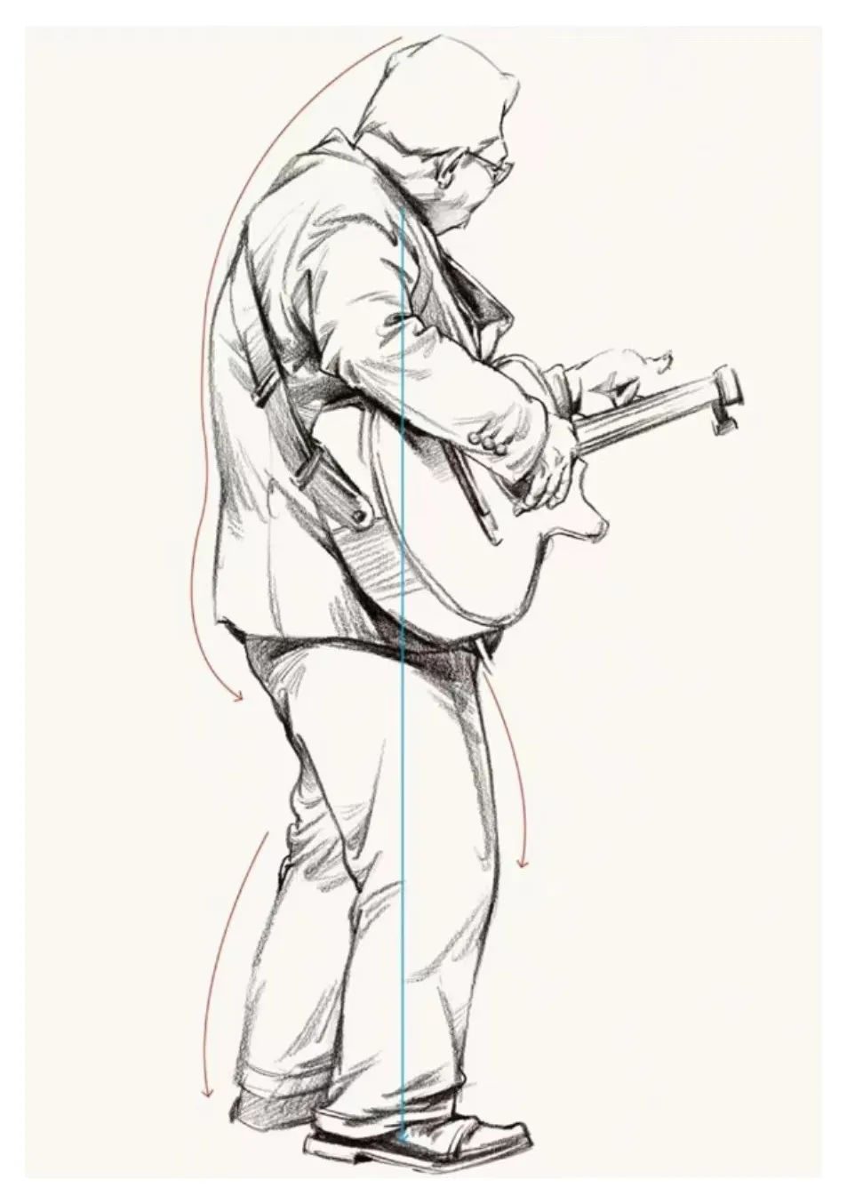 1、重心基本決定了你畫出來的人是不是穩(wěn)定的,所以在觀察人物時就要確定人物的重心,標注出來。