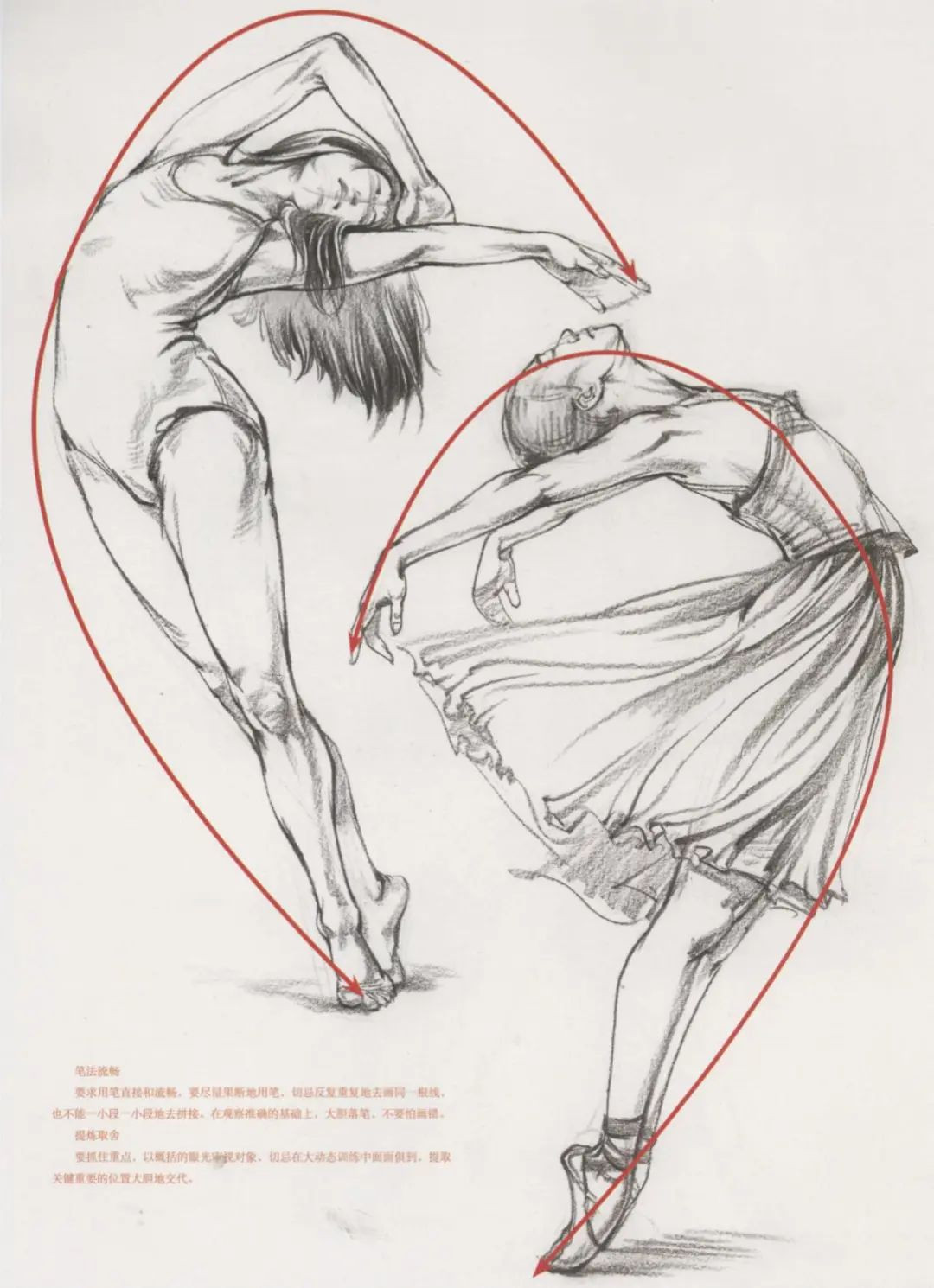 速寫第一眼看到的首先就是動態(tài),如果感覺動態(tài)舒服,那說明起碼動態(tài)比例沒有大問題。運動之美是運動員們通過充滿張力的身體運動產(chǎn)生出力量感,而舞蹈之美則是通過舞動身體完美曲線產(chǎn)生身體的美感,完美覺得他們美的原因,是因為他們運動的線條,即動勢線,掌握好人體的動勢線,人體的運動之美才能表現(xiàn)的舒展有張力。