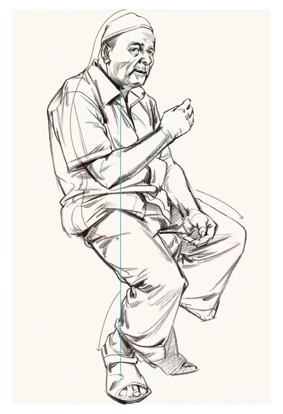 速寫分為動態(tài)速寫和靜態(tài)速寫?? 今天我們主要講講動態(tài)速寫的特點,要在動態(tài)速寫訓(xùn)練過程中把握住大動態(tài),必須學(xué)會抓準動勢線,動勢線是人體中表現(xiàn)動態(tài)特征的主線。 畫側(cè)面時,動勢線主要體現(xiàn)在外輪廓的一側(cè),畫四分之三側(cè)或正面時動勢線主要表現(xiàn)在脊椎和四肢上。抓準動勢線是速寫中很重要的一部分。