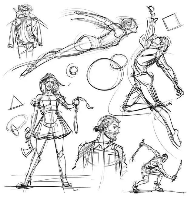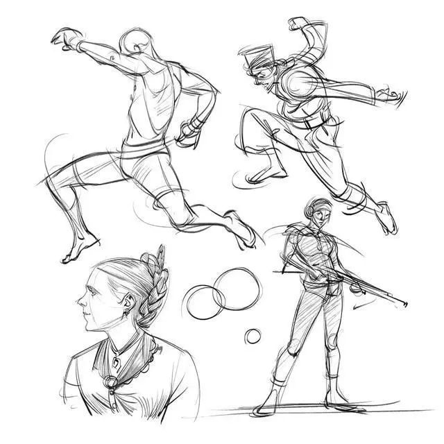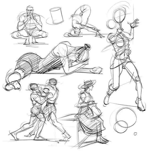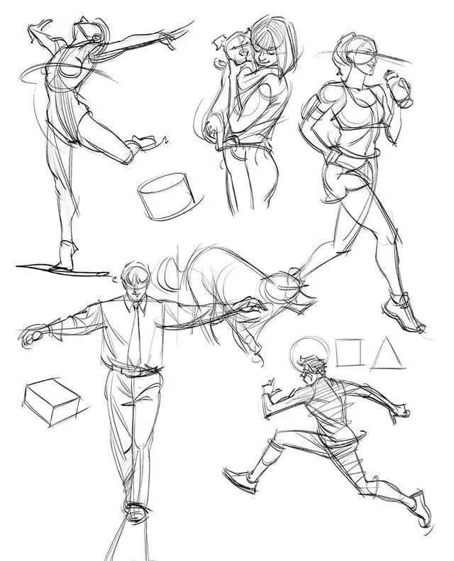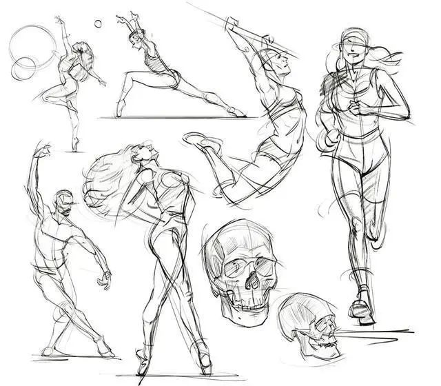 理解人體的運動規律對人體繪畫有很大的作用。人體運動主要是由脊椎和四肢運動決定的,盡管千變萬化,規律還是存在的。所以多練習人物的大動態、經常畫一些動態速寫,對于把握人體運動規律還是有很大作用的。
