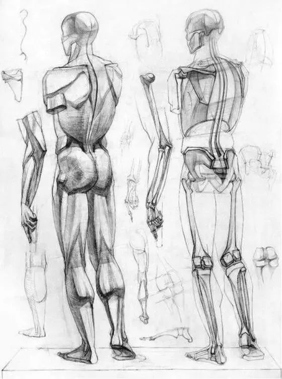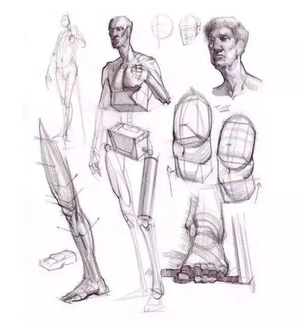 人體形體關系比較復雜,大家在理解形體關系的時候,需要將人體各部分的形態概括成幾種幾何形體,進行分解與組合,弄清他們相互組合、榫接的關系,這樣就比較易于形象的記憶和加深對人體形態特征的理解。