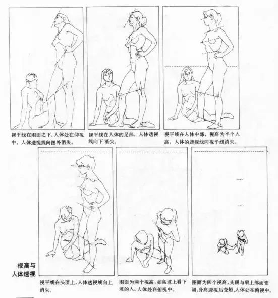 在作畫時,大家應該首先確定觀察對象的視角和視距,明確人體在圖面中整體透視的關系,然后才能確定人體各個局部的透視關系。