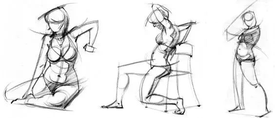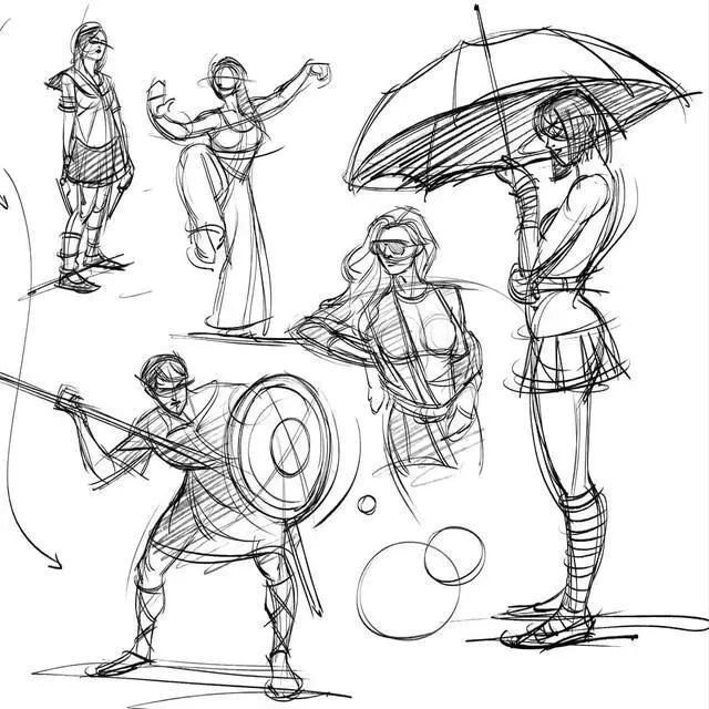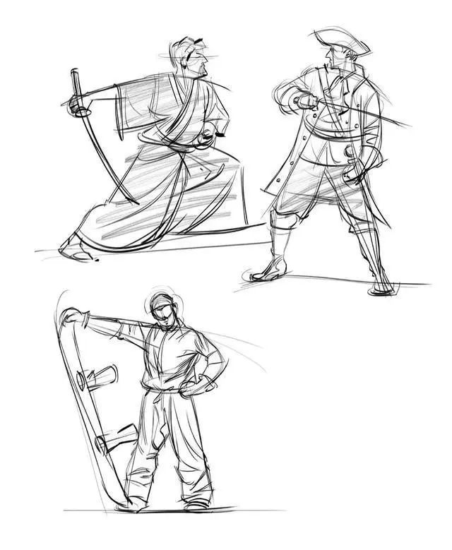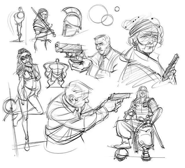 關于動態速寫的練習,大家可以以不同長短時間來練習,比如有一分鐘的、五分鐘的、十五分鐘的、三十分鐘的等等。根據時間的不同,能夠訓練我們在有限時間里如何快速的繪制出人物動態。