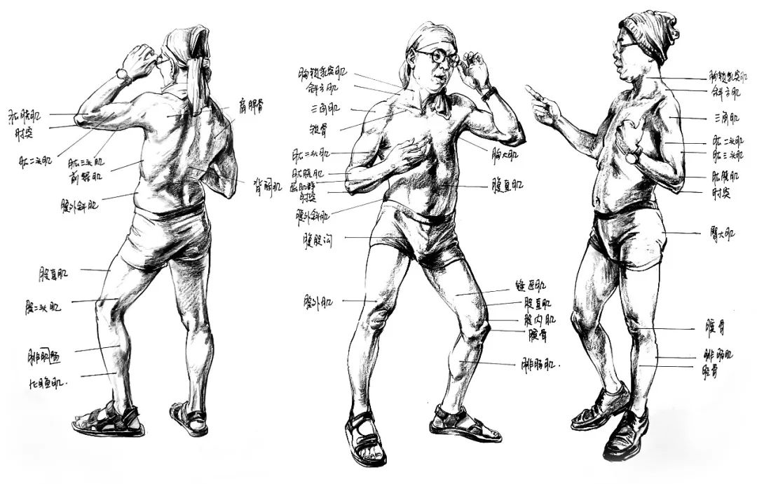 以上分析的內容和圖例,是在人體繪畫學習當中需要練習的基礎內容,除了上述的五大部分外,還有一些關于人體局部形態的刻畫,人體光影關系的表現以及人體與衣褶關系的表現也是大家日后需要深入學習的內容。