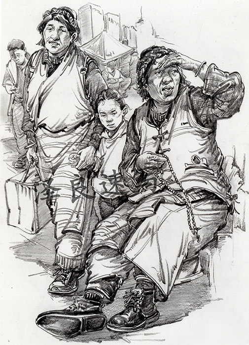 ②側鋒,由重到輕慢慢上提(拖筆),用于刻畫衣褶處,與中鋒結合。根據需要畫虛或者畫實。