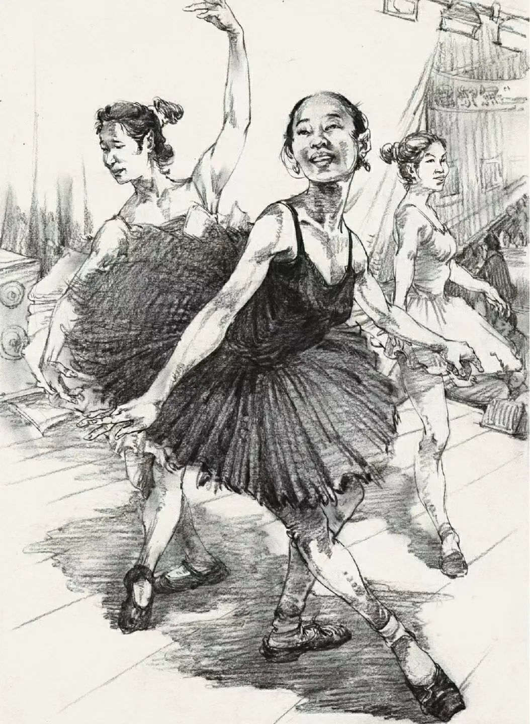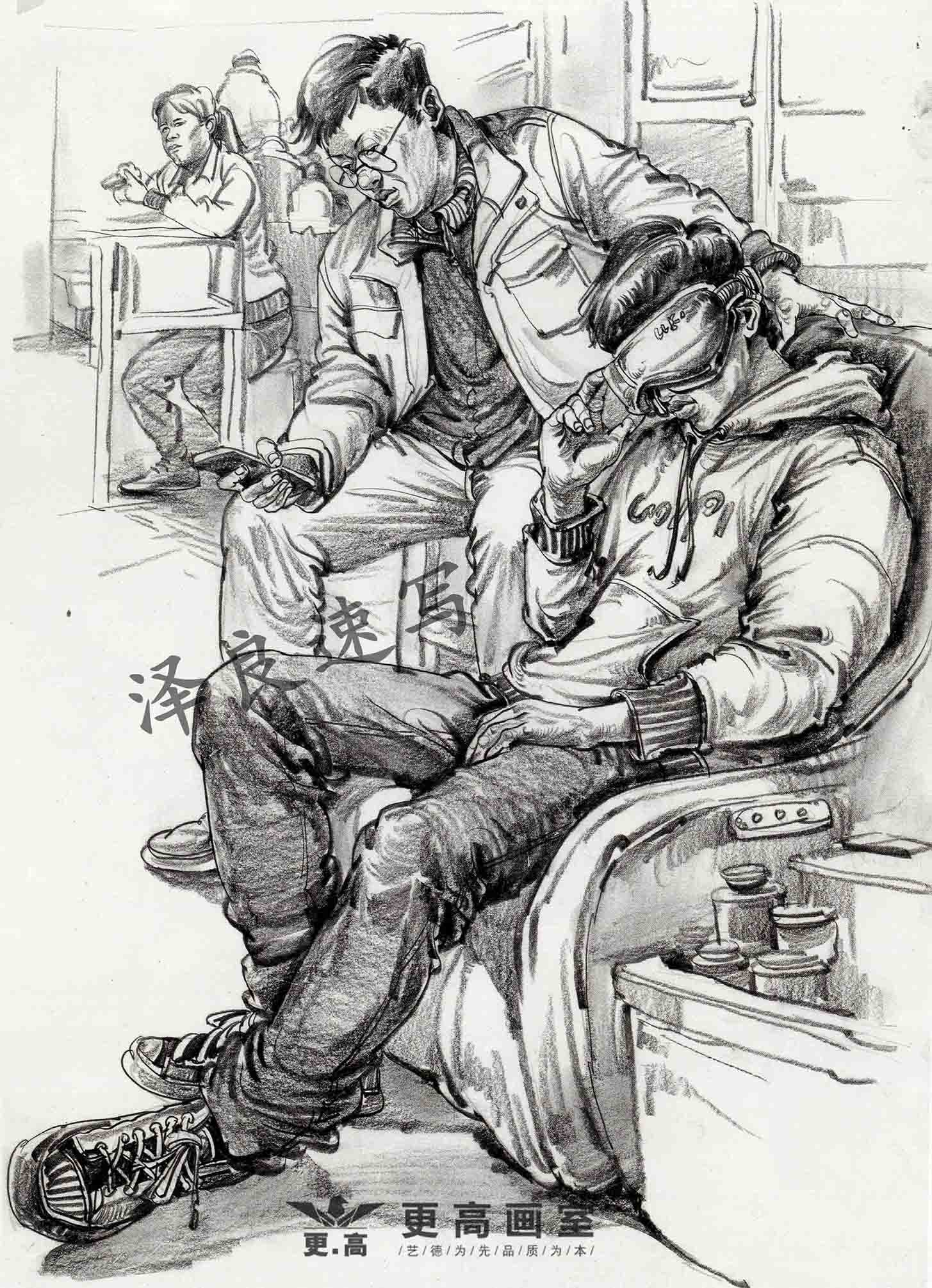 單人速寫是研究人物本身的關(guān)系,組合速寫是研究人與人之間的空間關(guān)系。