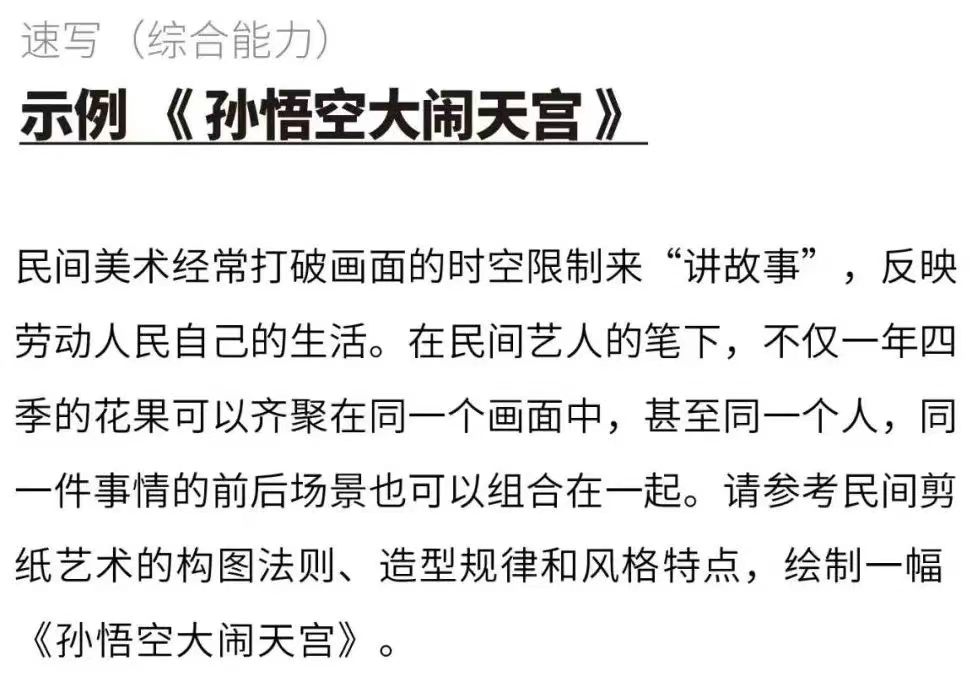 文字闡述,廣西考過的孫悟空大鬧天宮,他直接是給到你的一段文字描述,讓你來畫,比如他可能會這么出。