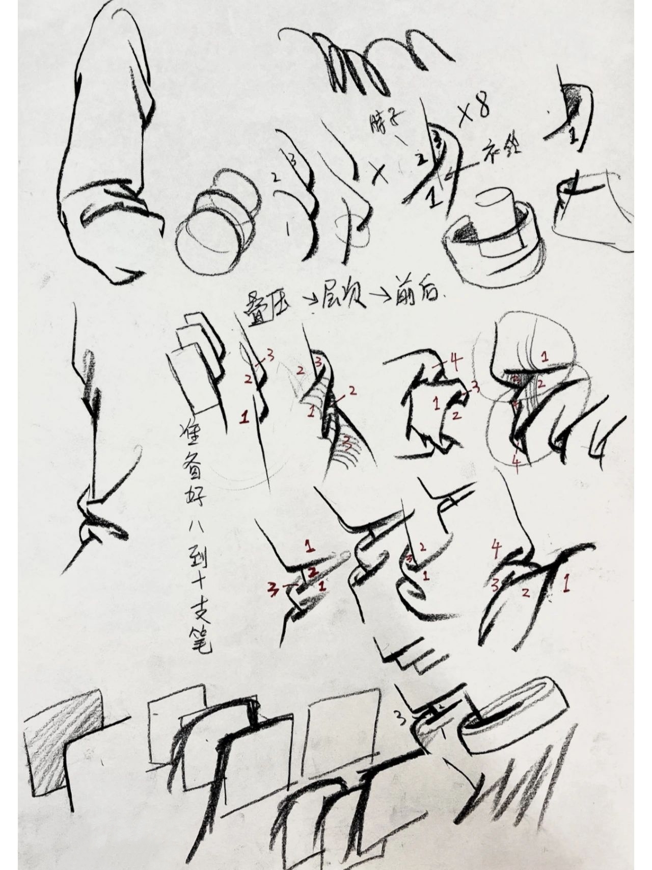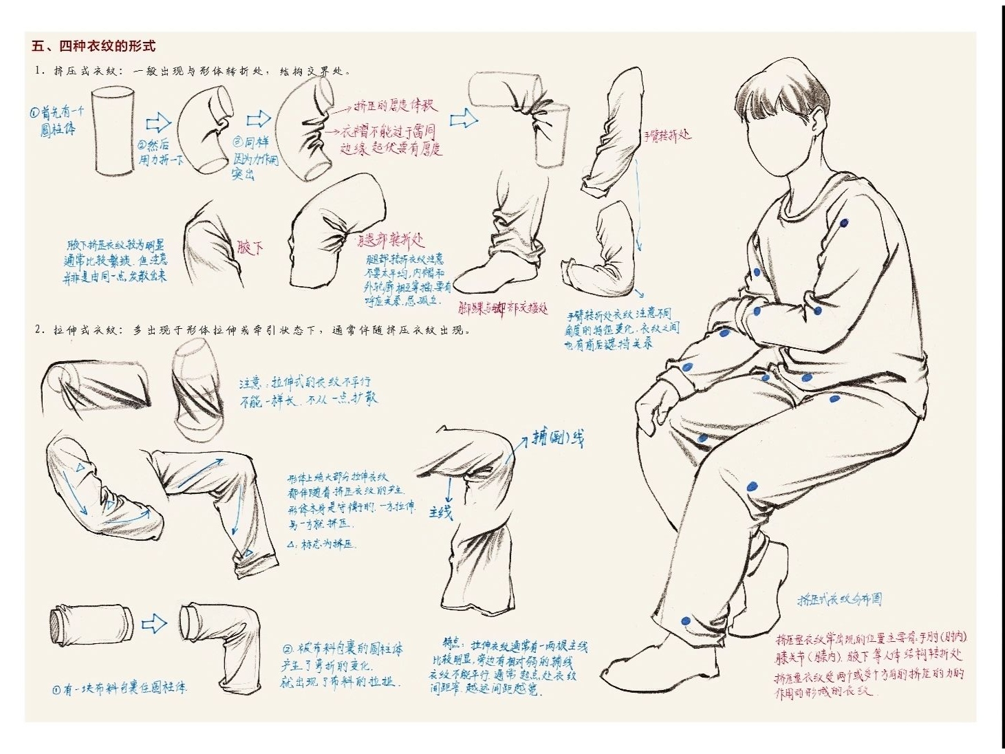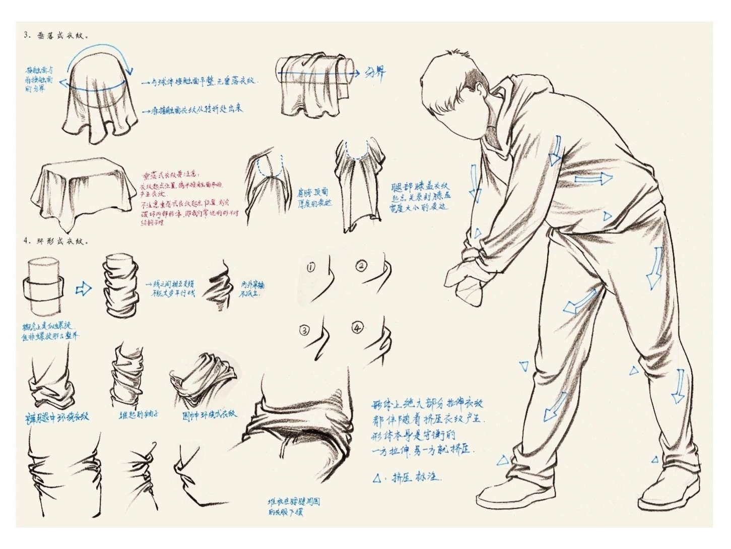 2.懸垂褶皺就是在畫素描的時候找兩個支點(diǎn)作為衣物的懸掛點(diǎn),常見的褶皺膝蓋之間,肩膀之間,肩膀和伸出的手臂之間。