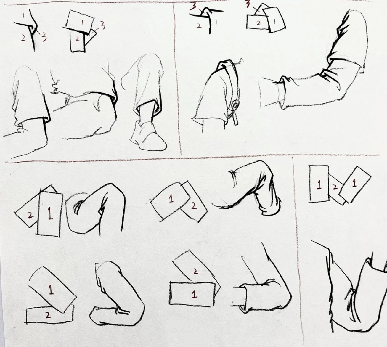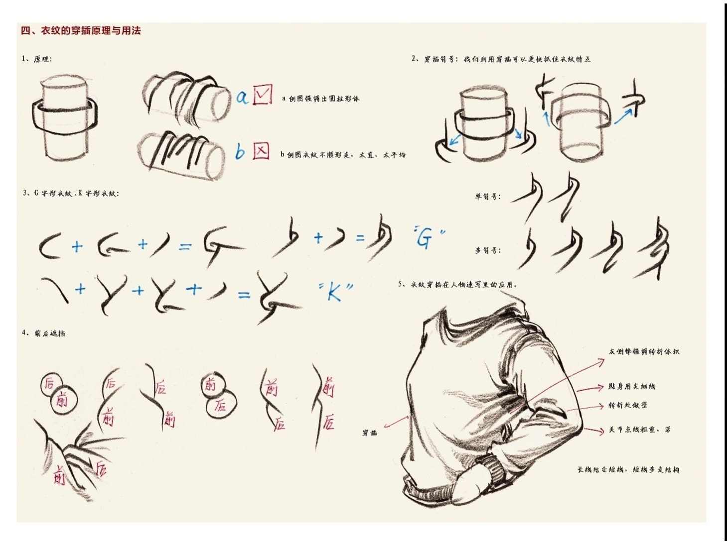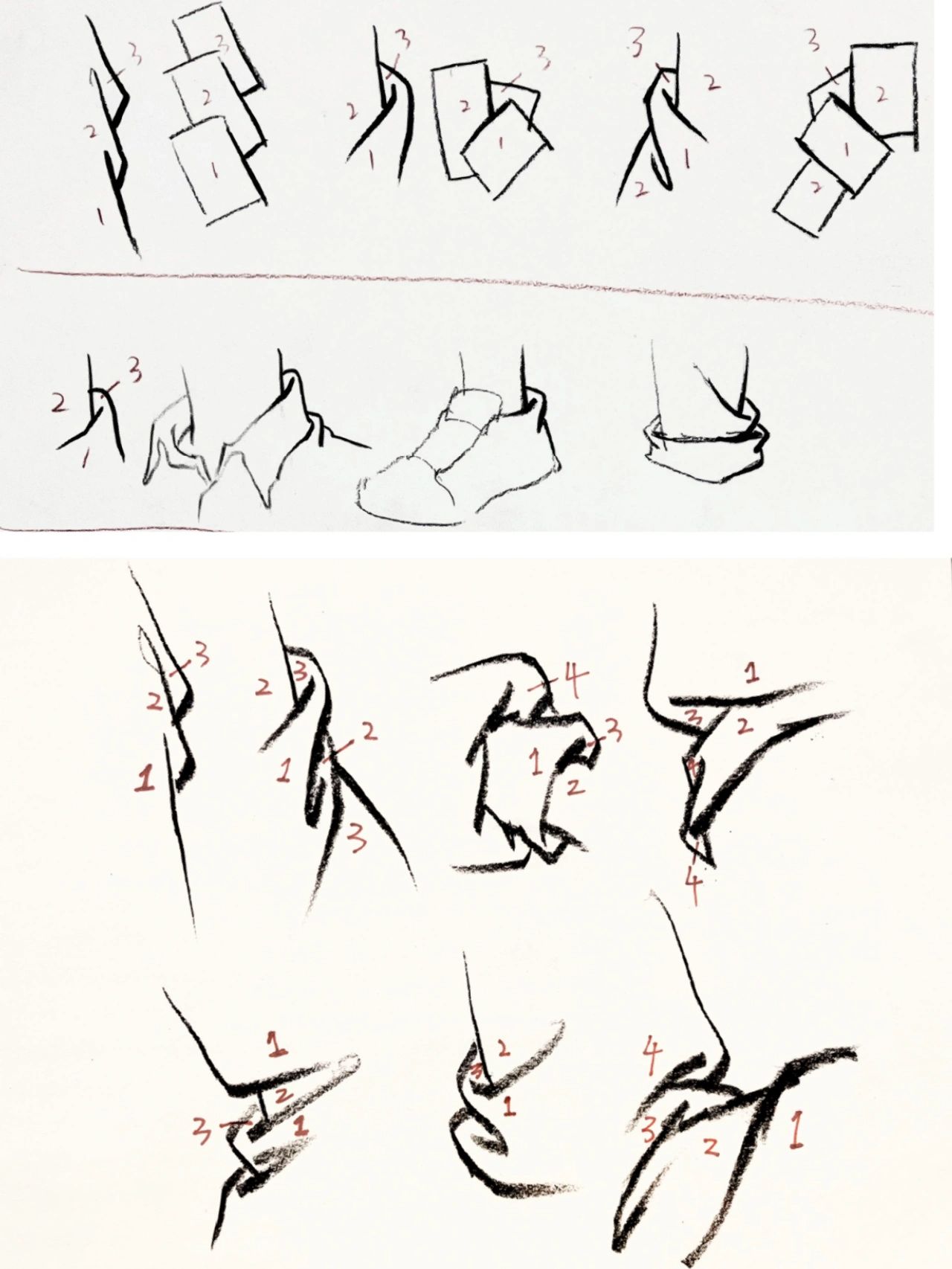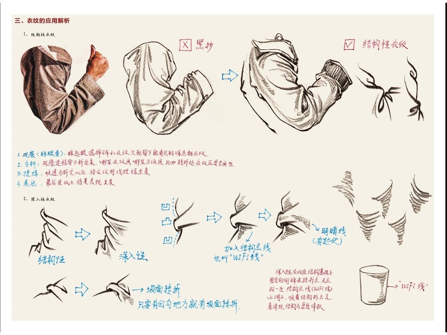 2.懸垂褶皺就是在畫素描的時候找兩個支點(diǎn)作為衣物的懸掛點(diǎn),常見的褶皺膝蓋之間,肩膀之間,肩膀和伸出的手臂之間。