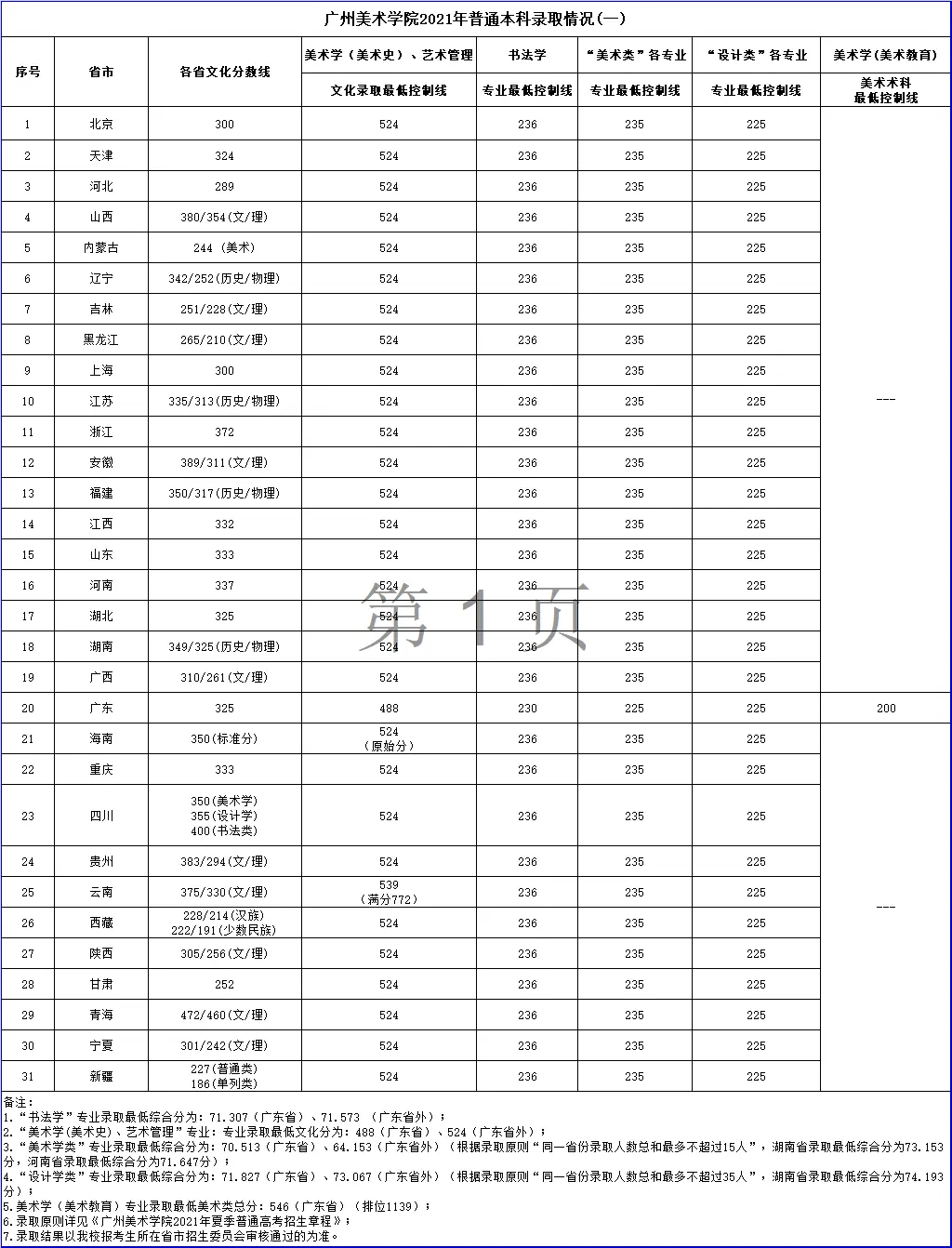 二、2021廣州美術學院藝術類錄取分數線【全國】
