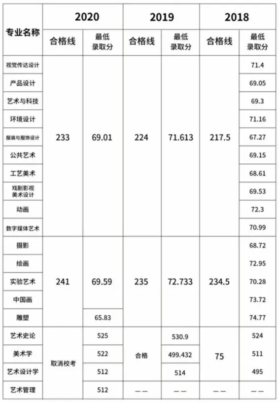 注:1.按遼寧省、河南省、湖南省的錄取規則,美術學類、設計學類、雕塑、書法專業的綜合分計算方法為:綜合分=文化總分×0.067+省統考總分×0.167。